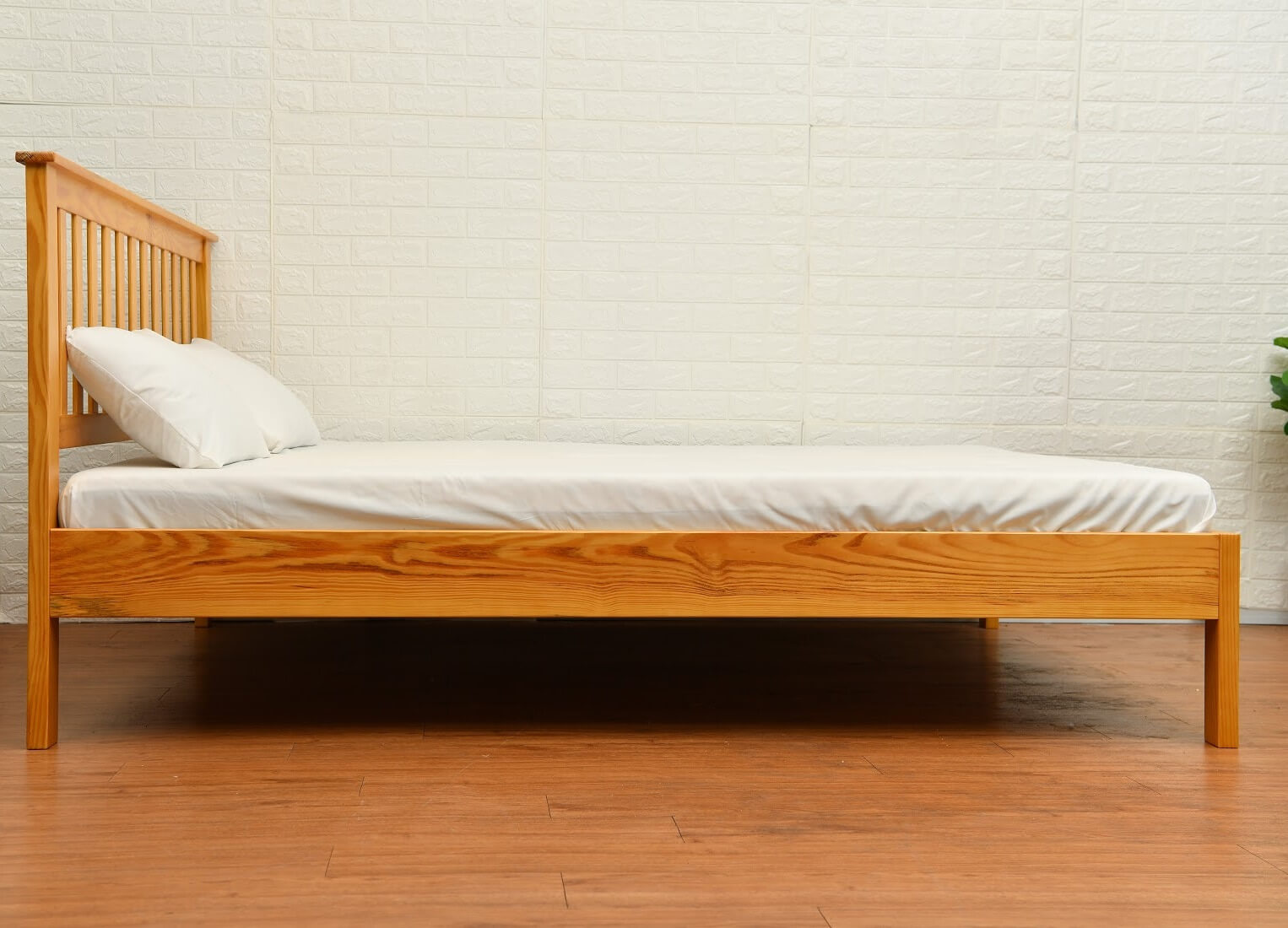 Giường gỗ Amando Piny được làm từ 100% gỗ thông tự nhiên. Phủ trên lớp gỗ thông cứng chắc là lớp sơn màu nâu vàng nhẹ nhàng, sang trọng. Sự cứng cáp của gỗ thông, kết hợp với thiết kế thanh gỗ bản to vững chắc đã khiến cho sản phẩm có khả năng nâng đỡ người nằm khá tốt. Ngoài ra, gỗ thông là một loại gỗ có độ bền cao, đồng thời lại khá an toàn cho sức khỏe. Do đó, bạn có thể hoàn toàn an tâm về chất lượng sản phẩm
